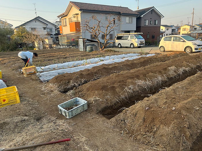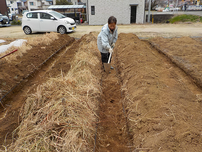 寒さに負けないように堀江の畑に畝立てをしました