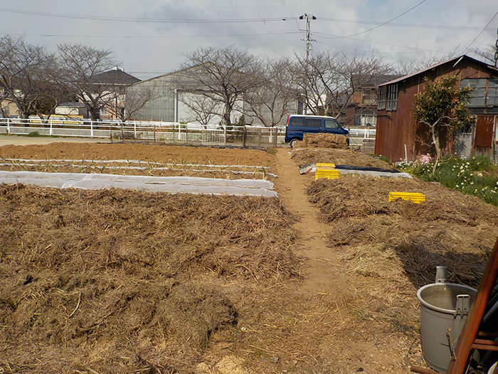 その他の畝には重信川で取ってきた草をかけました