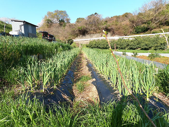 山のニンニク畑