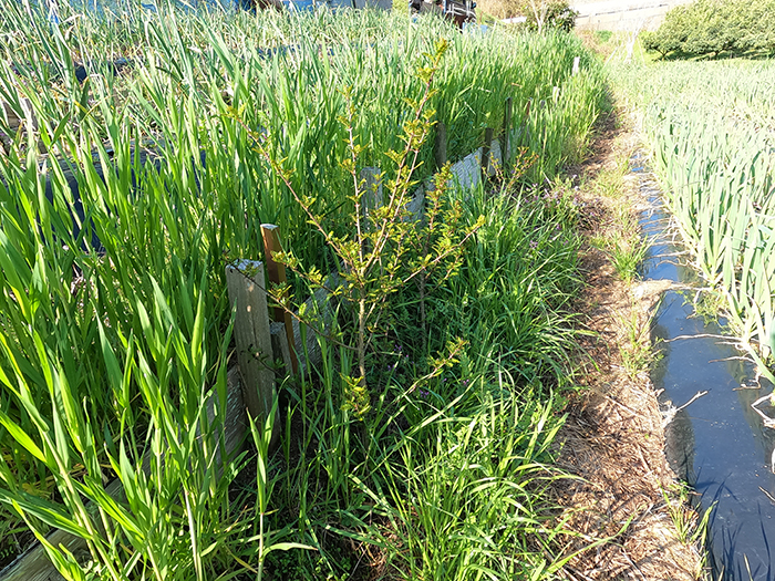 緑肥で撒いた麦の間に山椒がある