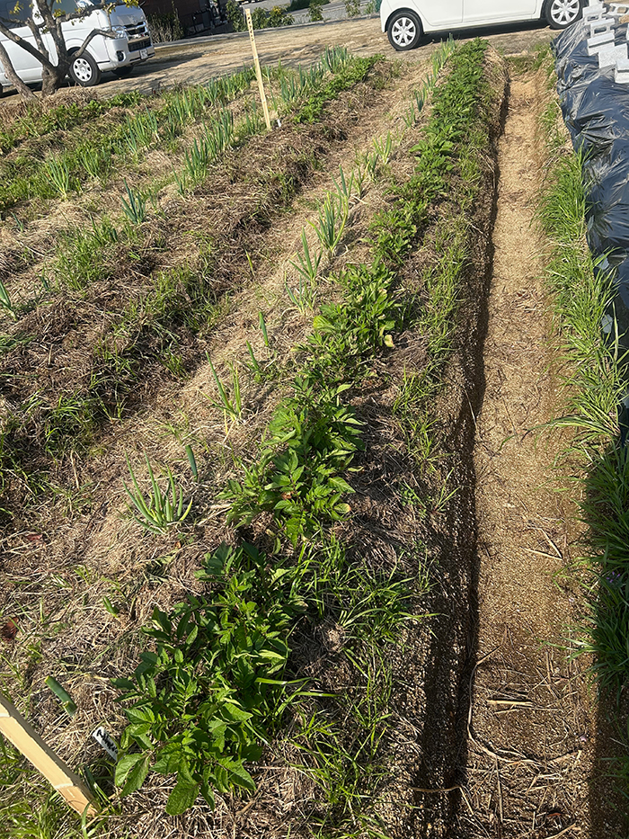 僕は草管理とニンニクの芽を引き抜くのが最近の日課