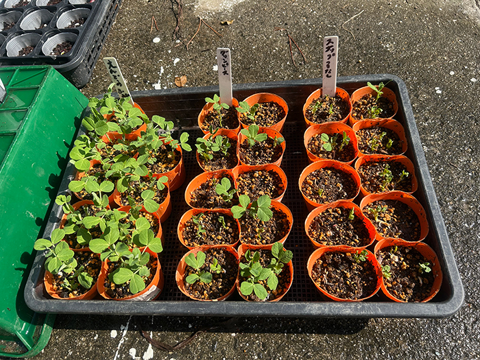 色々な種類のマメを苗立てしている
