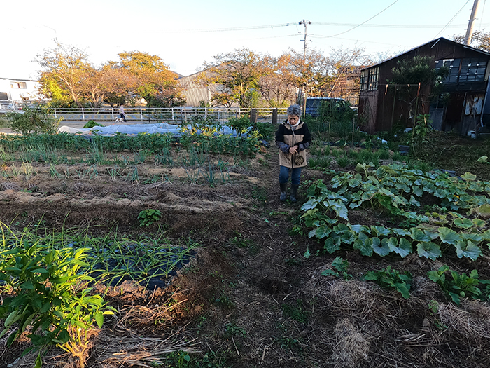 和江さんは次から次へと畝の開いたところに野菜を植える