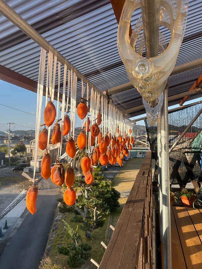 柿を吊した糸がグルグルに絡みついていた