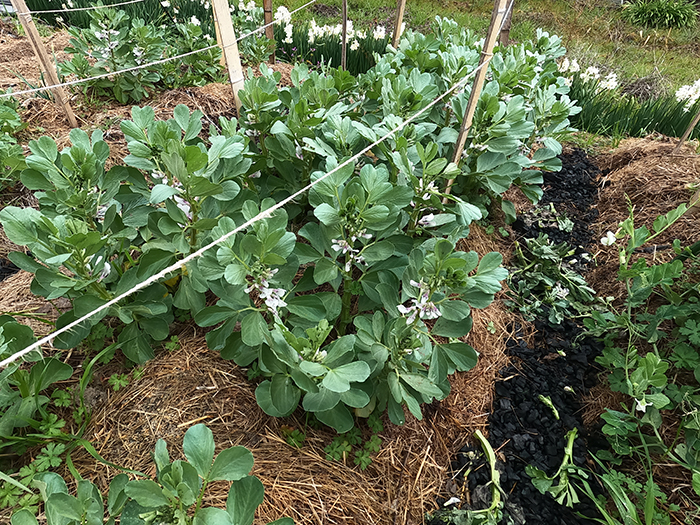 先ずは畝間に撒いて歩くと段々炭が小さく砕ける