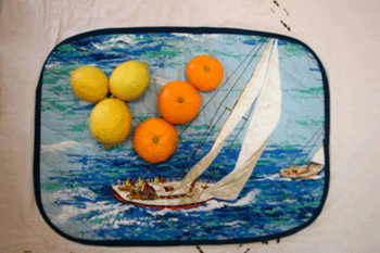 昨日は連れ合いの実家のある大崎上島へ行った 島の家の周りの放ったらかされたミカンやレモンやハッサクを採る 家の食卓のランチョンマットに乗せて写真を撮った |