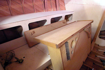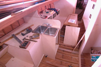 ギャレーの部分がだいぶ格好が付きました それで船内の大まかな木工は終わります トイレを取り付けて |