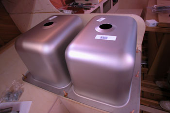 ギャレーの二槽の流しです(逆さまに置いてある) いよいよ先に部品取り付け穴とか 特徴的なところでは