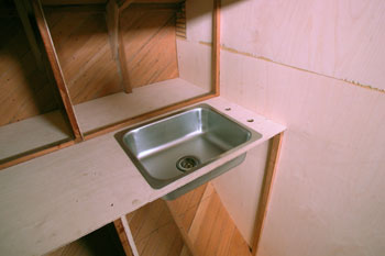 中央の凹みがガスオーブンをジンバルに吊して揺らすスペース 船用のガスオーブンレンジをもらったのでそれを積む事にした 全部で1.5メートルの横幅があるL字形の台所となる 金儲けの仕事を始めたので撮り貯めてある写真をアップする事にする