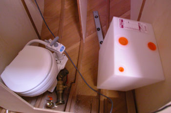トイレとホールディングタンクと給排水バルブ 船のトイレにも直接外に排水しないように