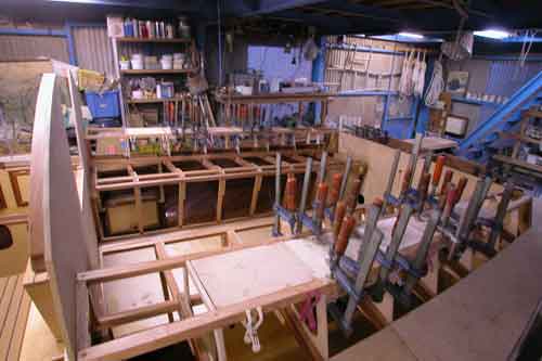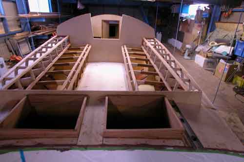 デッキを伏せる準備を始める 船首から船尾へ補強板を付ける部分のデッキフレームを切りかぎ 滅多に使わないノミとハンマーを一日中不自然な姿勢で使い ウエストマリンへ3度目の注文をした |