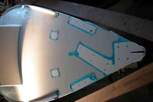 船首船室棚の中などフィレット付けが終わっていないところにフィレットを付ける メインキャビンの棚の中もあり一日中フィレット付けにかかった 今日はマスキングをしておいて天井の低粘度エポキシ塗りだ 出来るなら船を逆さまにしておいて塗りたいくらいだ |