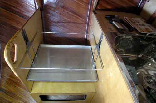 船内左舷コンロを置く台(ジンバル)を取り付けた これがなければ港の中でさえも少し波があると調理は出来ない 台風14号の後湿度が80%を下がらず接着が出来ない 秋晴れは何時からだろうな |
