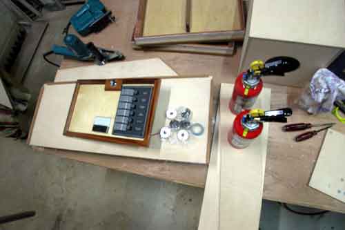 ハードドジャーを仮取り付け 消火器取り付け台を作り エンジンコントロールワイヤーをコントローラーに接続 一日があっという間に終わる |
