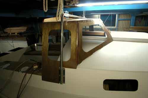 ハードドジャーを型どりして 合板は日本製の2.5ミリタイプ1耐水合板 大嵐で特別に強い力がかかったときには ドジャーが有ると無いとでは大違いで 追っ手では船内に風を集めて涼しいし |
