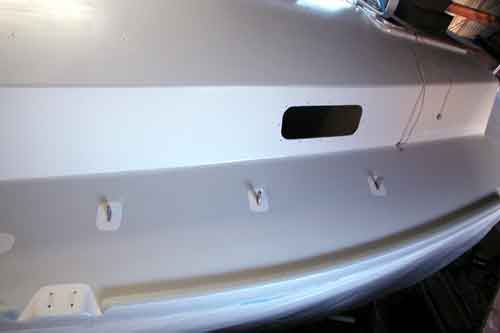 船内取り付けボルト5本ずつを通してチェーンプレート仮止め 3個目のバッテリー置き場床塗り スターンハッチ物入れ周り塗り 後部品取り付けだけだと思っていたがまだまだ細かい塗りや それでもいよいよ最終仕上げだと思う |