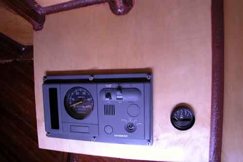 左クォーターバースに取り付けたエンジンコントロールパネル コクピットから顔をのぞかせて見える範囲に取り付けた タコメーター付きの特注パネルである |