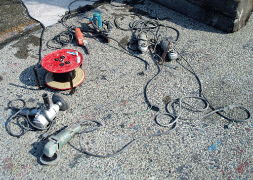 コードリールの下に写っている取っ手が有るのはパッドサンダー