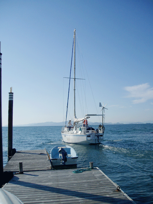 国内近場のクルーズで入港の度にスターン物入れから舫ロープを持って