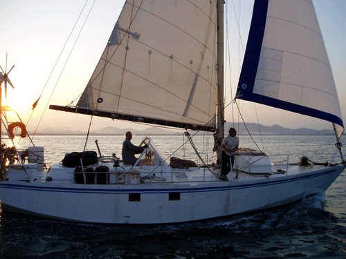 セールの上げ下げも手伝ってくれるが風がなくセーリングしたのはほんの5分