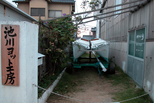 工房東の通路にTiki-21カタマランを収納