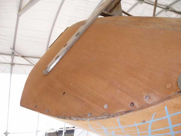 船尾の綺麗に湾曲した板を止めた埋め木が磨いて無くなっている