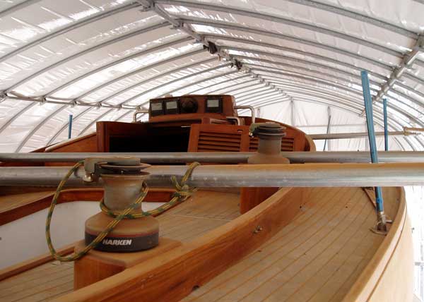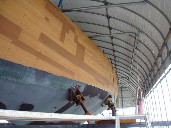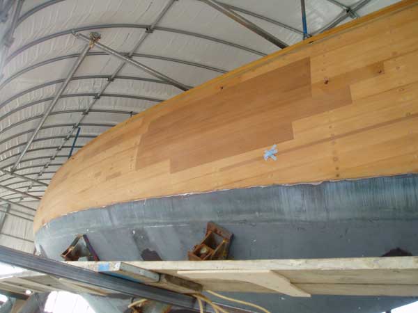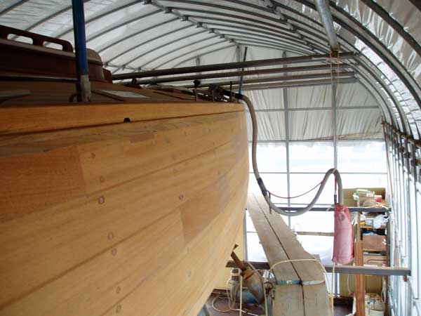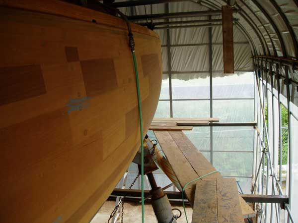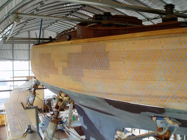 「竜王」の外板マホガニーは一度完全に全面フェアーリングを終えたが