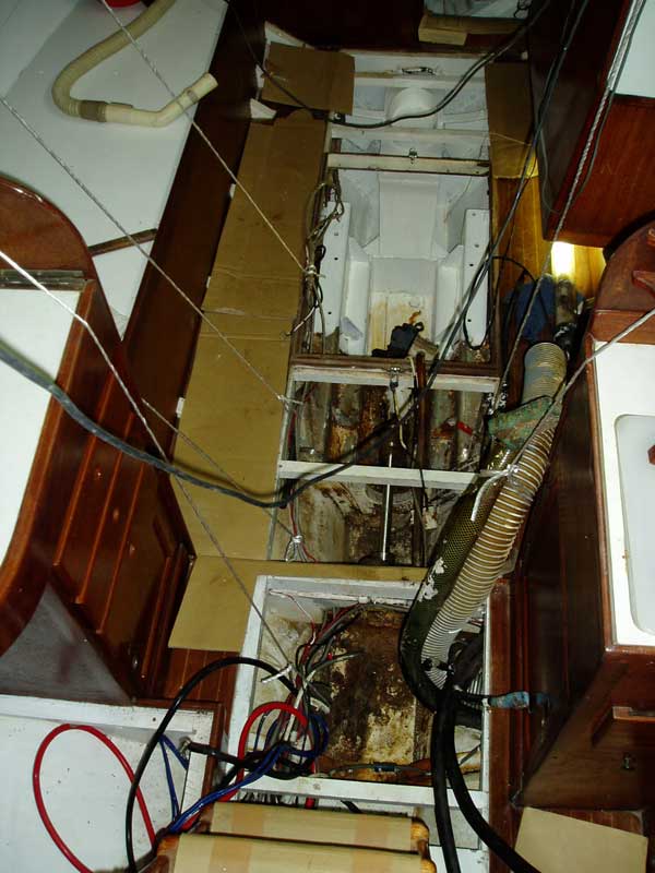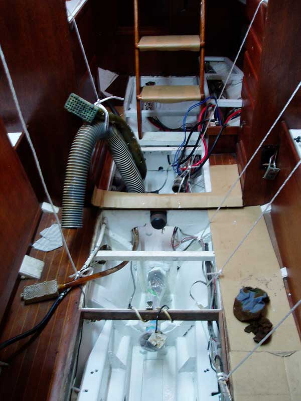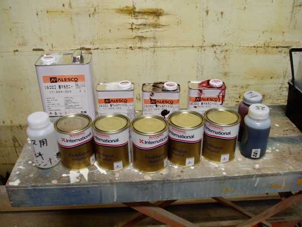 船内は朝早くビルジ溜まりの白色ペイント塗りと