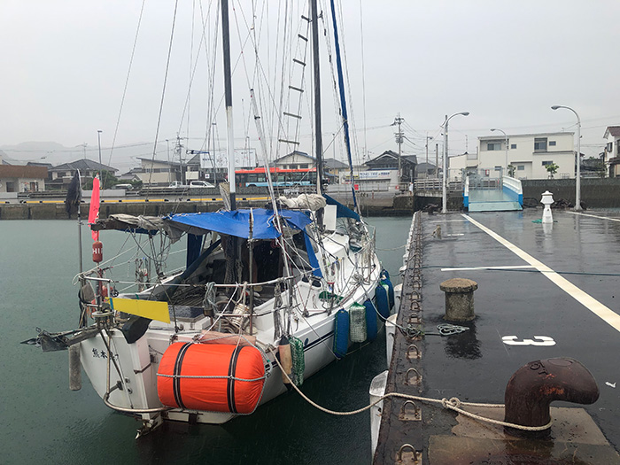 帰りの弓削島では台風被害でカタマランが半沈していたそうです