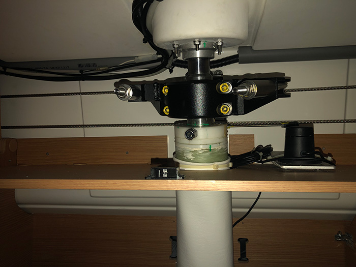 スケグにピンドル・ガジョンが2セット合計4セットのピンドルとガジョンを一直線に通すのは非常に難しい仕事でした