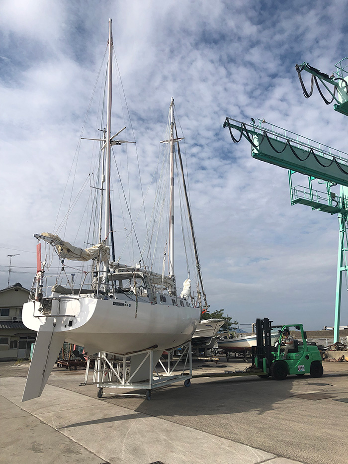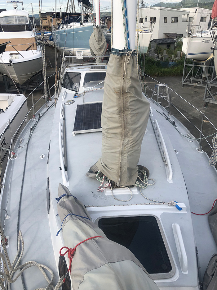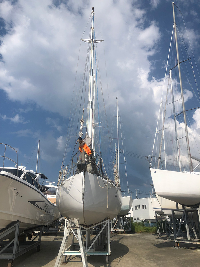 セールカバーを外し何時でも出航出来る状態で降ろす