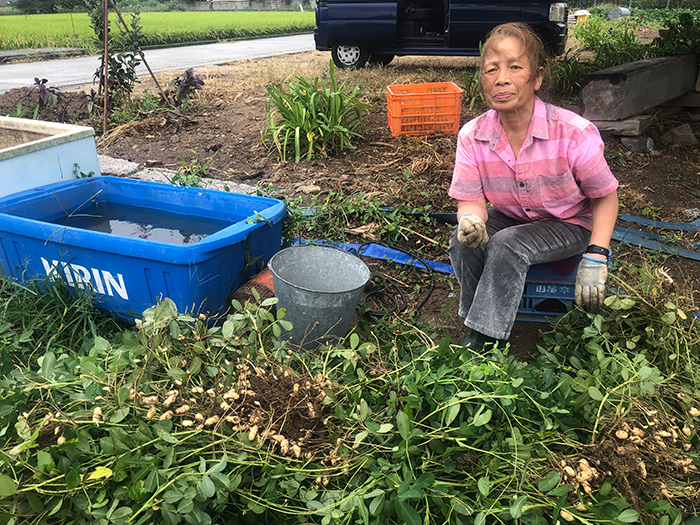 台風14号の最中最後に残ったピーナッツの穫り入れに行く
