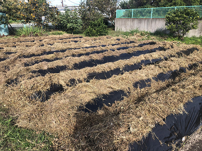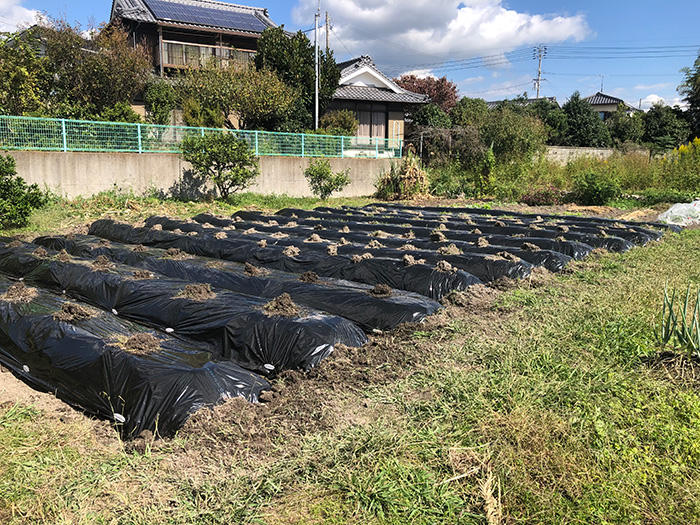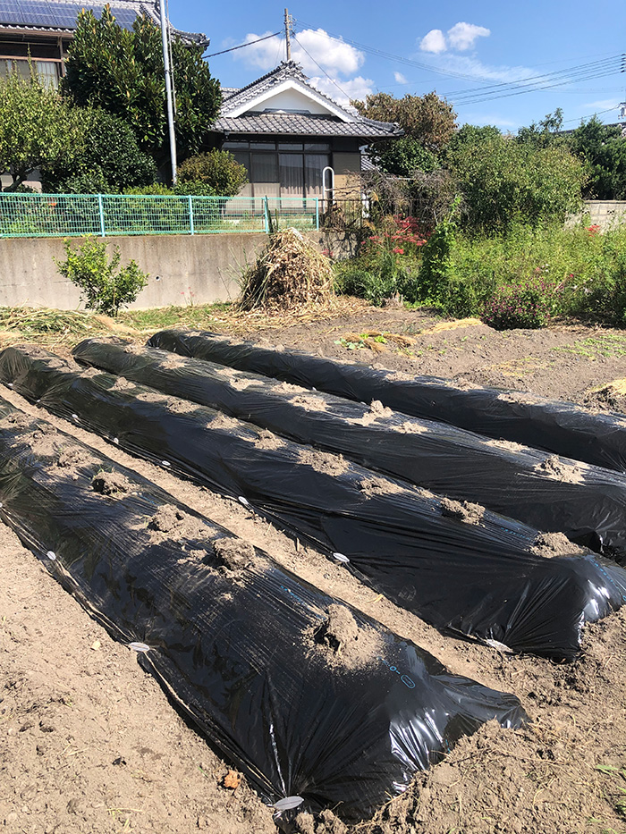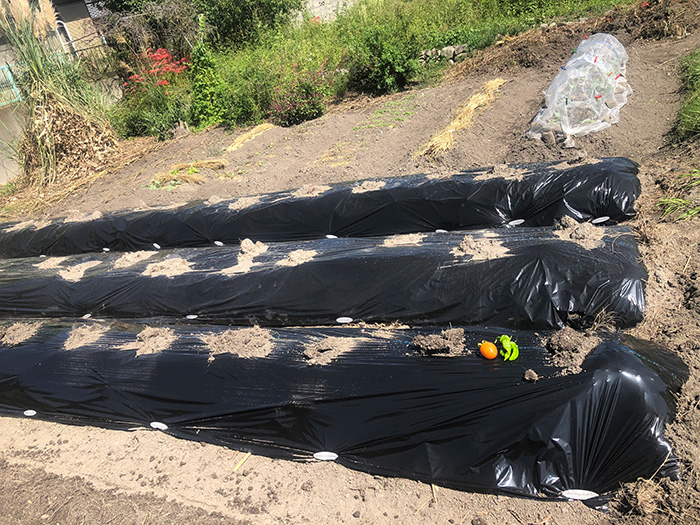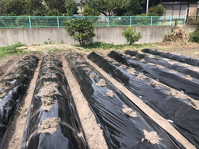 それを土で被ってその上から黒マルチをかける