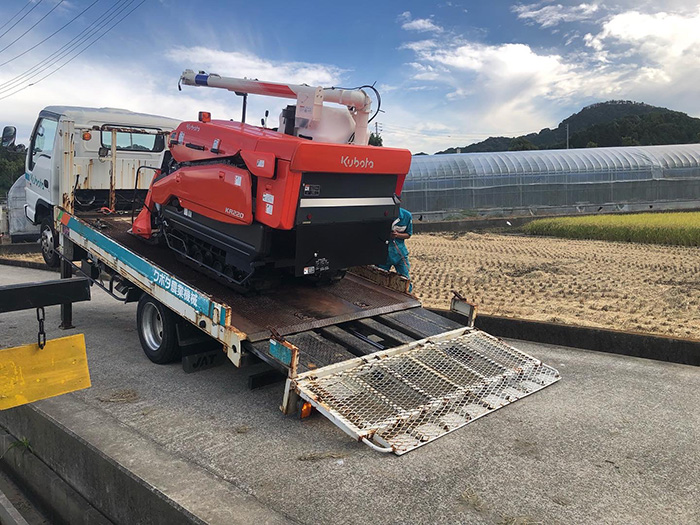 30×40×60にまとめられた刈草の塊を13個軽四輪に積み込み畑へ行く