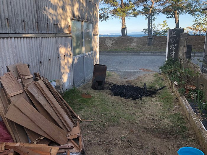 もう一夜2時間くらい廃材を燃やさないといけない