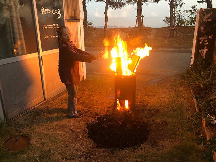 どうしても焚き火をしようと夜工房に来たが海からの風だった