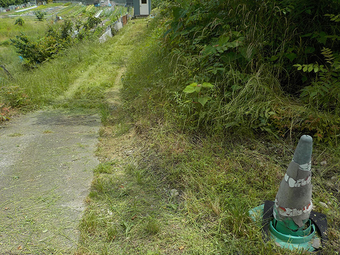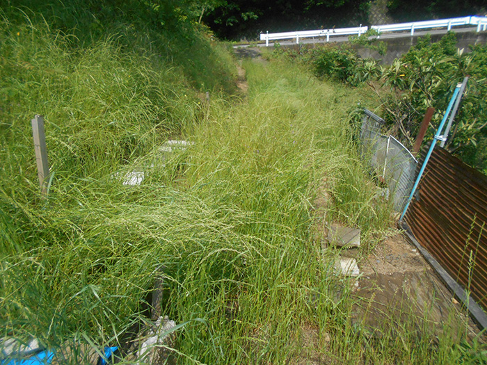 段々畑まで降りてくる道には草が生え草刈をしないと車は降ろせない状態