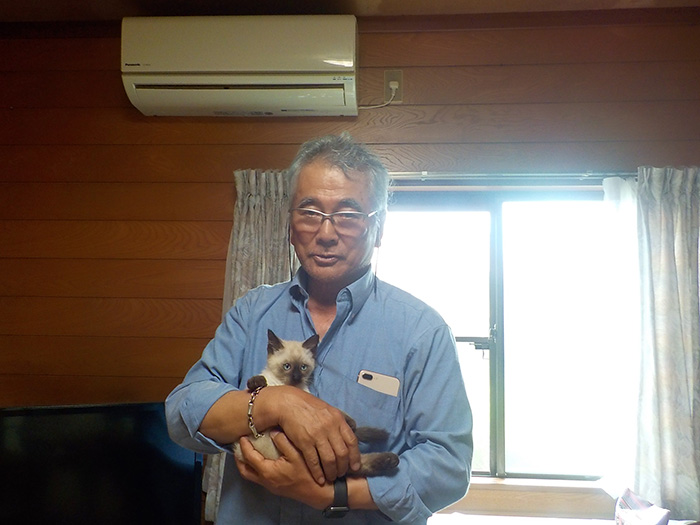 写真のシャム猫最近知り合いから捨てられていたのをもらったそうだ
