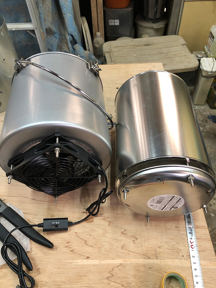 これらを使って 送風式ウッドガスストーブを作る事にした