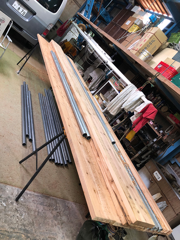 明日は晴れるそうなので床用の足場板を吊り上げることにしている
