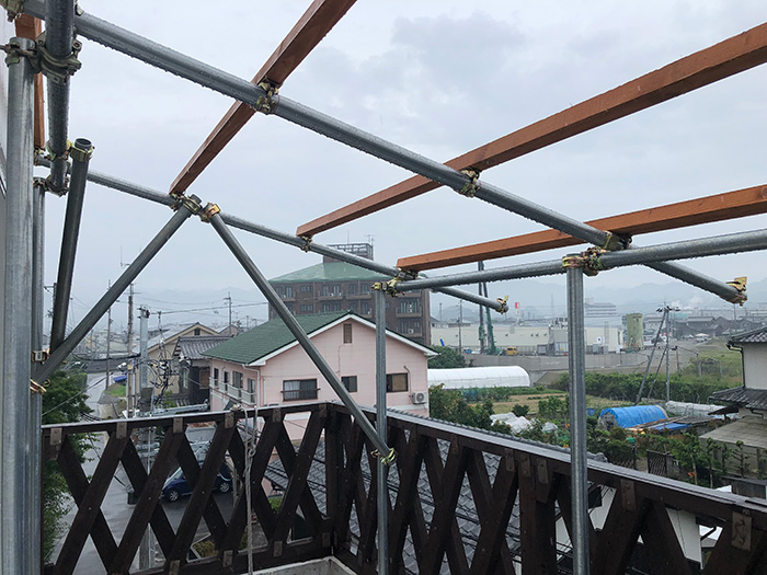 その隙間から雨が降り込み足場板で作った床が濡れる
