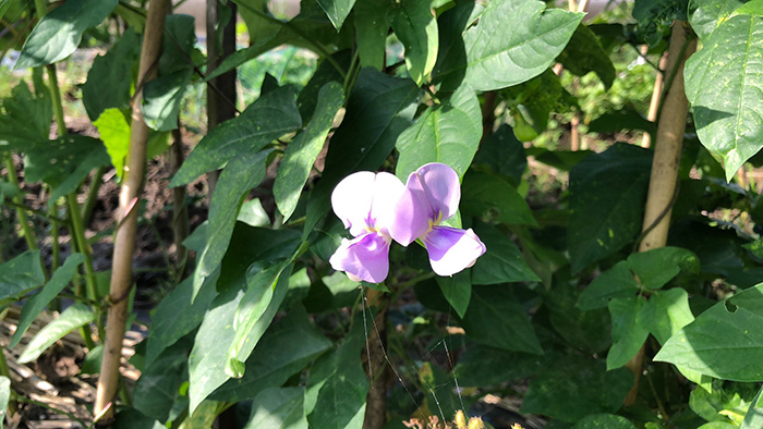 右からつる性の豆 ごうや そして又つる性の豆2つ