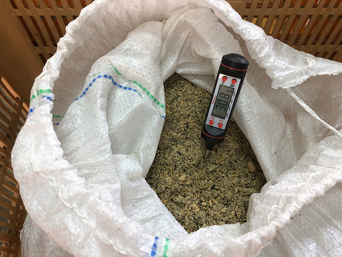 それとほぼ出来上がった米ぬかぼかしを網に入れて塊を取り除く事をした