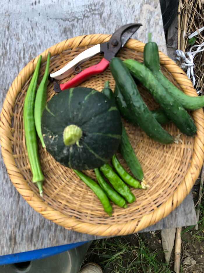 こはる農園で出来ている作物を穫り入れ残っている作物の手入れをする