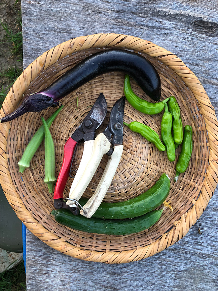 今日は朝からゴーヤの初収穫や梅干しの土用干しで忙しかった