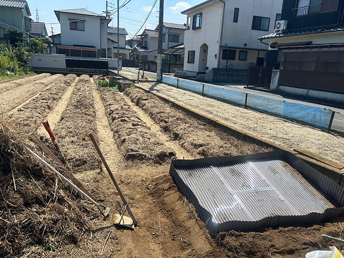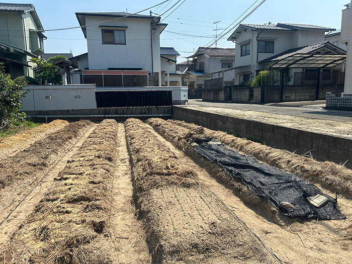 僕たちが借りた堀江の畑に畝立てをしているのを見た人から