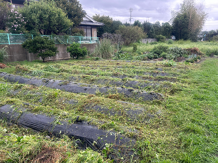 堀江の畑 草を置いていたところに山芋を作ることにした