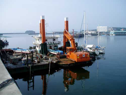 阿久根では広い港の中を何処に着けようかと2艇でうろうろしていたが、