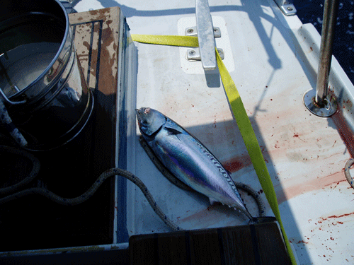 おまけに鰹が食べたいなとケンケンを流すといきなりちょうど一人で食べるのによい大きさの鰹が釣れた。