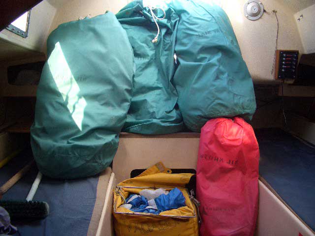 セールは、メイン1枚、スピン1枚、ジブ2枚、ストーム1枚です。
